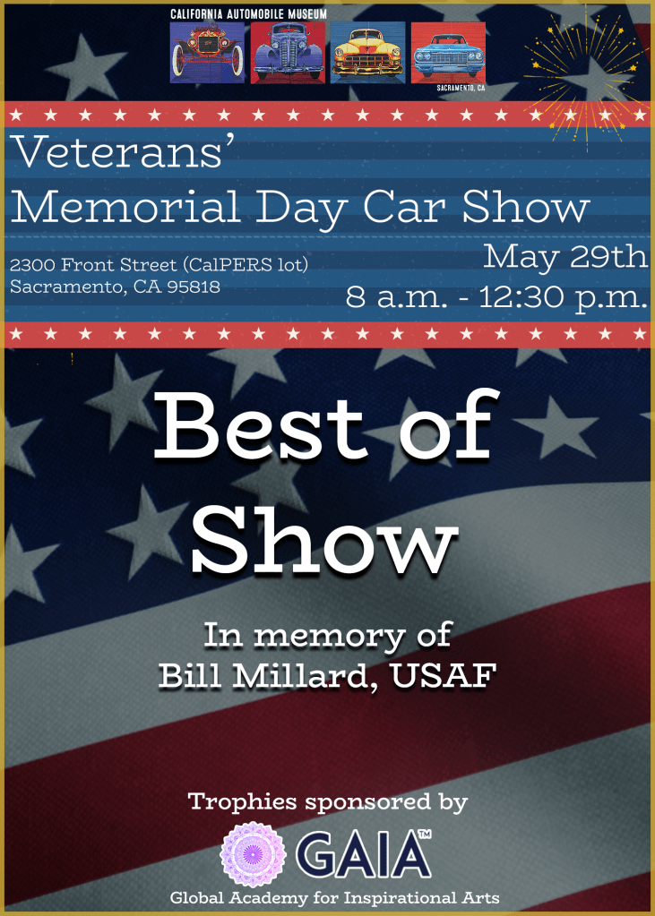 GAIA was a proud sponsor of the California Auto Museum memorial day car show. There were over 180 cars on display, featuring our own 1969 Camaro Z28.
