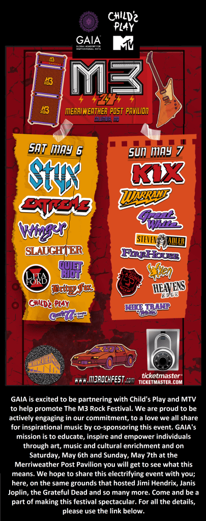 Upcoming Events The M3 Rock Festival https://m3rockfest.com/ Please visit our new website for everything you need to know: Gaia.art Share this: Click to share on X (Opens in new window) X Click to share on Facebook (Opens in new window) Facebook Like Loading...